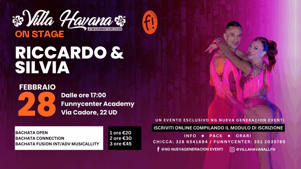 🕒 18.10 – 19.10 → BACHATA CONNECTION – Tecniche di connessioe corporea nella Bachata